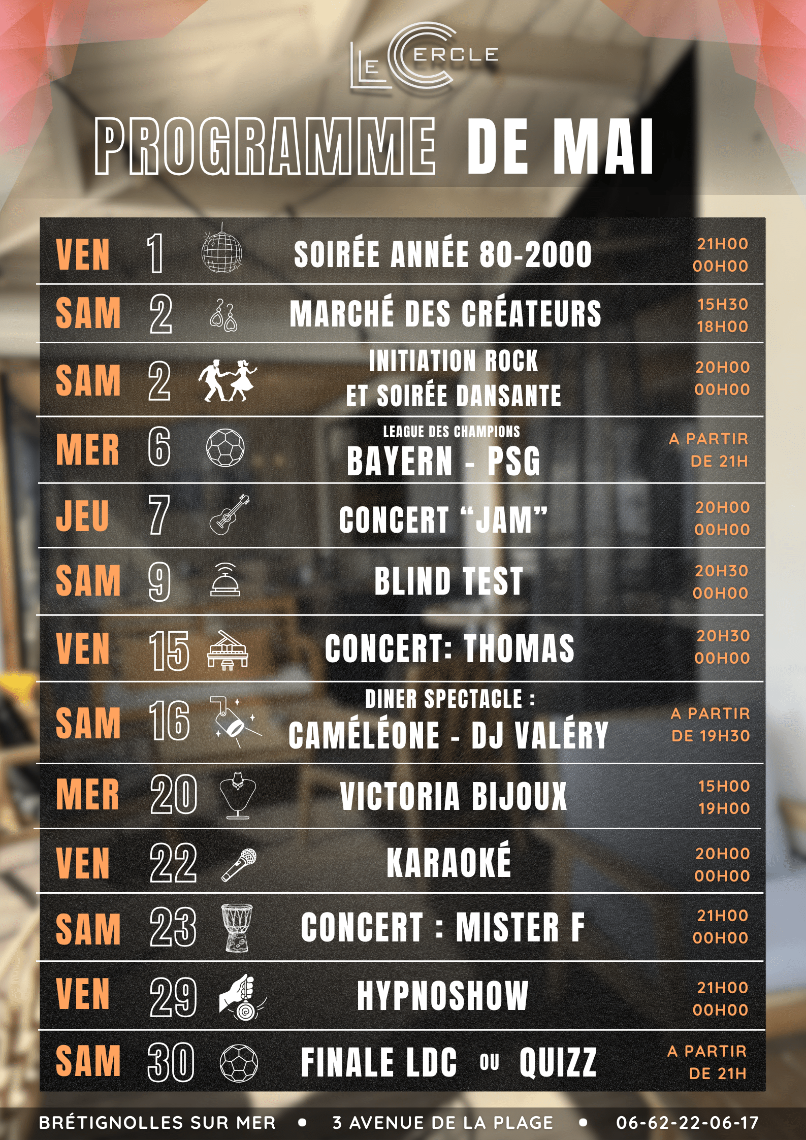 Disponible sur notre page facebook , notre Instagram ou directement au bar